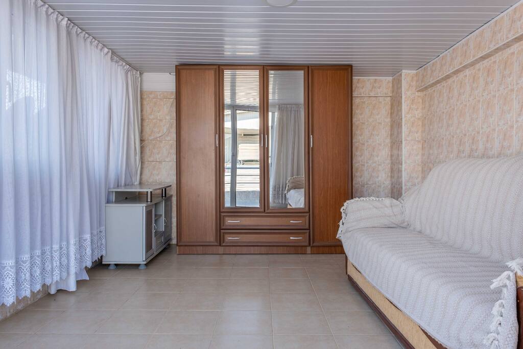 The second floor has a spacious room with a sofa bed with a lovely terrace, which is convenient for large groups. This level also has a small shower